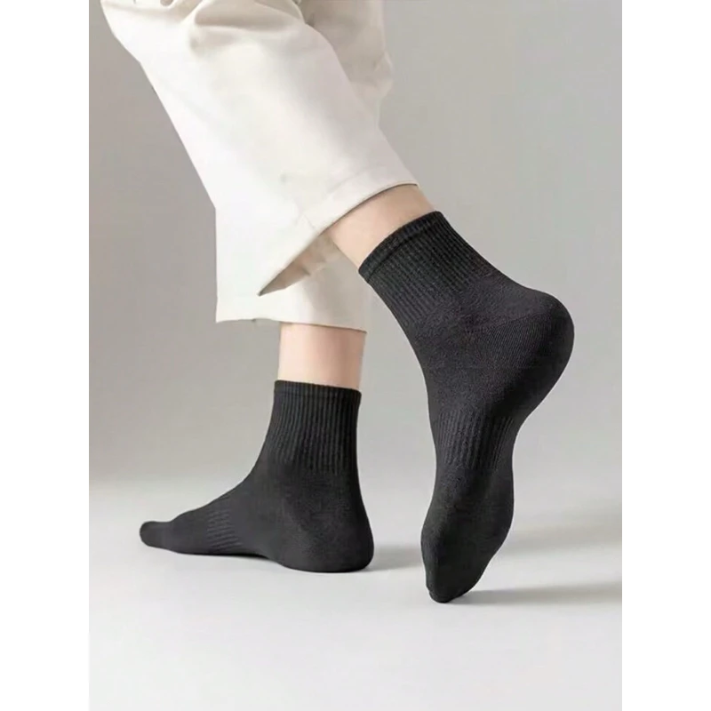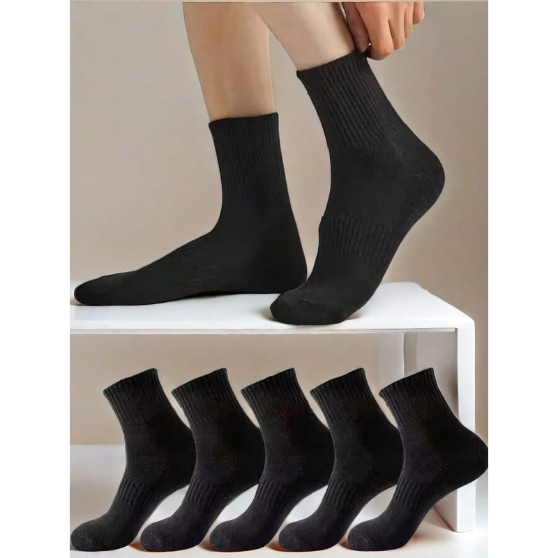 Meias pretas, de boa qualidade, adequadas para todas as estações.