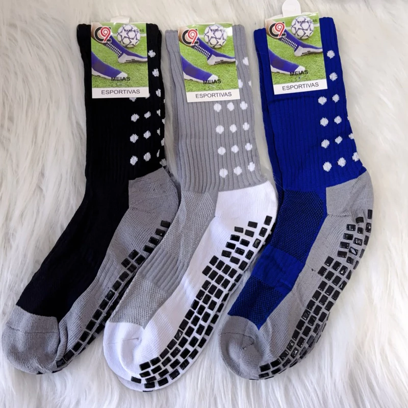 Conheça nosso novo modelo de meia esportiva antiderrapante, o produto perfeito para você que busca conforto dentro e fora de campo, com seu material de alta resistencia permite ter flexibilidade e agilizade com mais firmeza.
